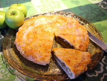 Tart Granny Smith apples, sugar, and kiss of cloves. Enjoy like a hand pie at room temperature or warmed up. Baked the traditional way in a stoneware plate.