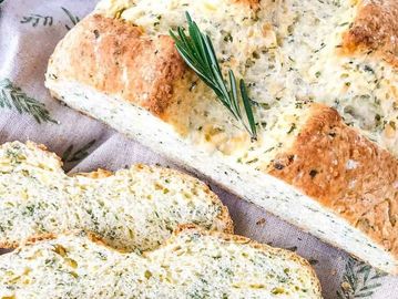 Traditional soda bread made with organic flour and rich buttermilk. Rosemary, thyme and garlic make this a savory compliment to your meal.