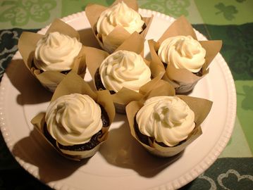 Half a Dozen moist and chocolatey cupcakes. A hint of Irish stout and cream cheese frosting make these cupcakes a tasty treat !! Not traditional but wonderful.